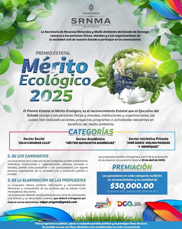 2 Jun | Hace 8 meses ANUNCIAN GANADORES DEL PREMIO ESTATAL AL MÉRITO ECOLÓGICO 2025, ORGANIZADO POR EL GOBIERNO DE ESTEBAN